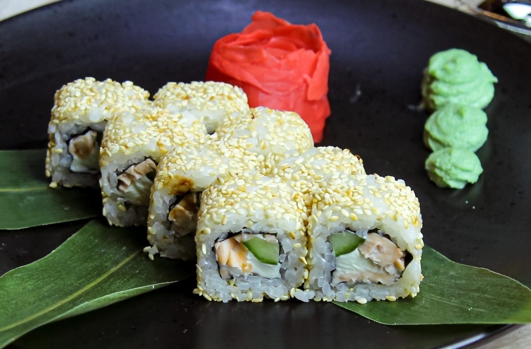 ЛОСОСЬ, ОГУРЕЦ, СЫР, КУНЖУТ, НОРИ, РИС (210 г.)