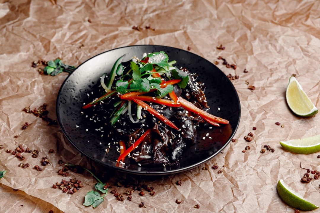 Маринованные древесные грибы, огурец, болгарский перец, соус му-шу (210 г.)
